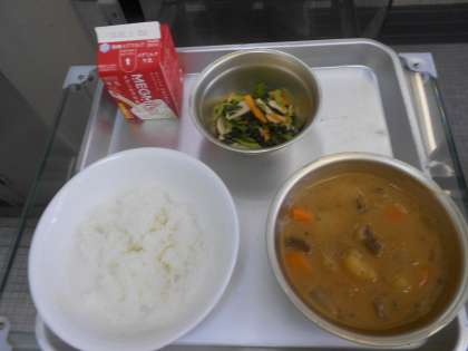 ごはん 牛乳 ビーフシチュー 小松菜のソティ