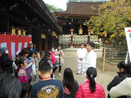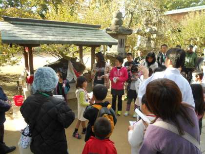 北野天満宮を取材してのはがき新聞づくりです。天満宮を案内していただき、情報を得て,はがき新聞づくりに進みます。