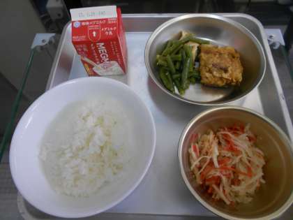 ごはん 牛乳 さばのたつたあげ 三度豆の煮つけ 紅白なます