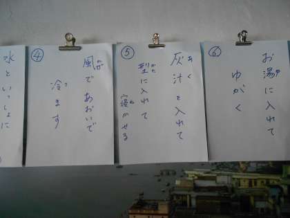 作業手順です。短縮で、先に仕込んだものも用意してもらって、時間いっぱい活動できました。