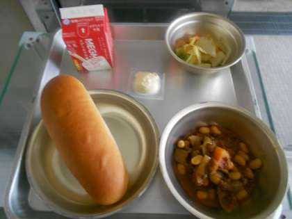味つけコッペパン 牛乳 チリコンカーン 野菜のホットマリネ チーズ