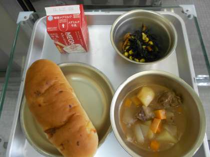 チーズコッペパン 牛乳 トマトシチュー ひじきのソティ