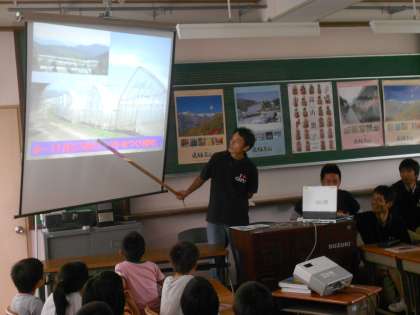 岐阜県飛騨から来ていただき、トマトのことやトマトの栽培についての講義を受けました。鉢植えで、校庭の目に付くところにおいて世話をして,7月に岐阜で同じぐらいの苗を植えて育ちを比べます。