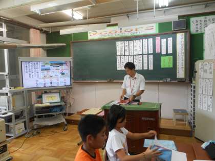社会見学に行ったところを、5年生に紹介するパンフレット作りの学習です。効果的なリード文を考えるために効果的な表現を用意してあり、そこから児童が見つけ交流する中で、練りあがっていくものです。集中して、学習に取り組み効果的な表現を工夫していました。効果的な表現について考える中でも適切にコミュニケーションをとり、学習が進んでいました。