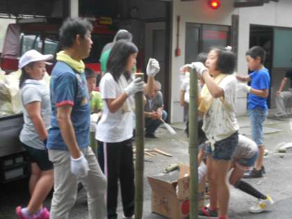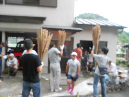 竹に、古い布をつめて出来上がりのものと、針金で木を割ったものをつめていくものとあります。