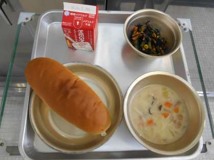 ミルクコッペパン 牛乳 きのこのクリームシチュー ひじきのソテー