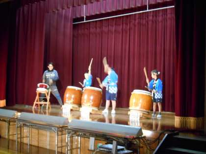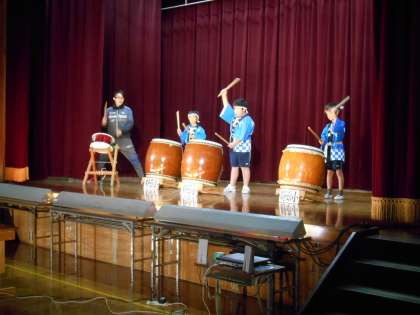 和太鼓演奏の発表です。太鼓教室の特別版演奏です。しっかり手を挙げて太鼓を打てました。