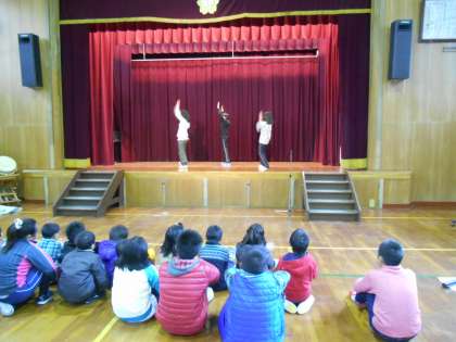 ダンスキッズの参加した児童の発表です。11月に総合教育センターで開催された講座に参加して、特によく踊れているとの評価の言葉をいただきました。朝会で披露しました。