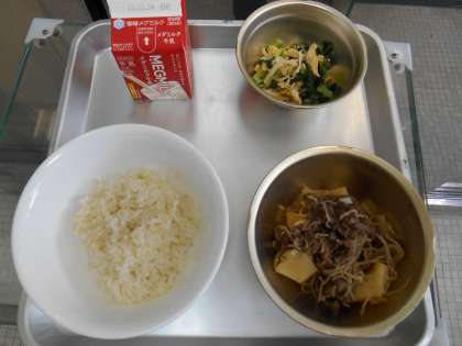 麦ごはん 牛乳 肉じゃが 小松菜と切干大根の煮びたし