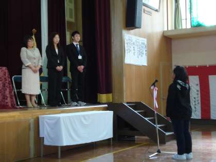 4月8日(火)平成26年度着任式を行いました。今年度は3名の教職員の方をお迎えしました。子どもたちは美しく大きな声で校歌を歌い、着任いただいた方をお迎えしました。お迎えの言葉もとてもはきはきとお話しできていて、着任された方はとても喜ばれていました。