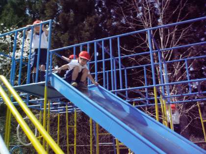 遊具を握るときは,親指は必ず下から握ること,手足4本のうち3本は必ず遊具に接していることなど細かなルールを確認した後,遊具遊びに挑戦しました。