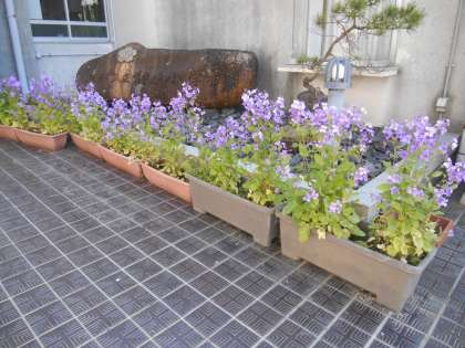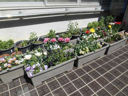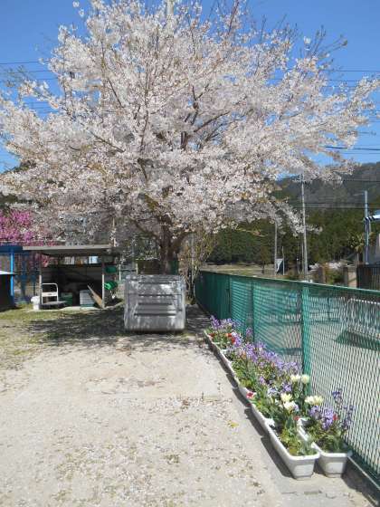 校内が、花いっぱいになっています。桜が今年は、長持ちをしています。プランターの花もたくさん咲いています。
