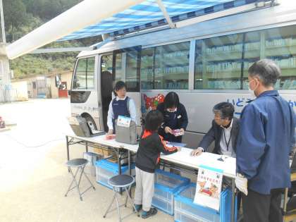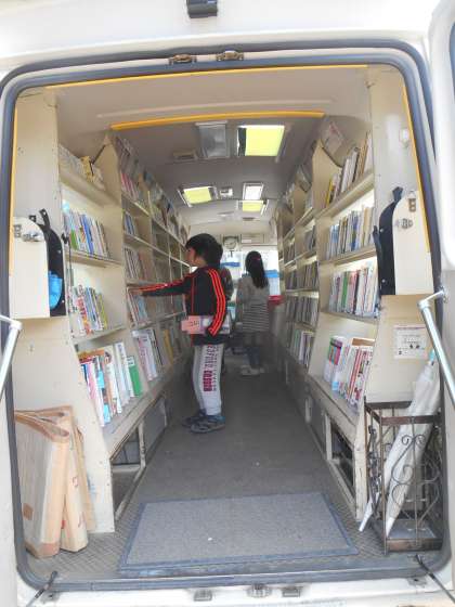 こじか文庫の日です。移動図書館は児童の楽しみの一つです。