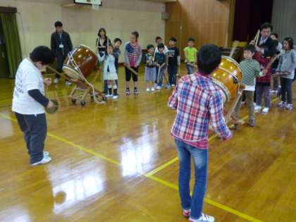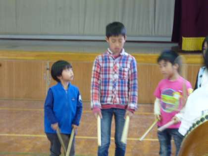6年生は鐘の担当をしたり,1年生に太鼓の演奏の仕方を教えたりと,リーダーぶりを発揮していました。