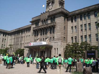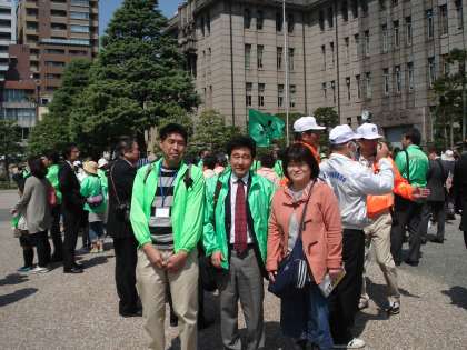 4月19日(土)京都市PTA連絡協議会の人権啓発パレードに静原小学校PTA役員さんと参加してきました。京都市役所前に全市の多くのPTAの方々や学校関係者そして市長さんをはじめ多くの行政の方が集い、四条河原町付近までパレードを行いました。この行動で以下のようなことをアピールしました。(当日の配布文書より抜粋)