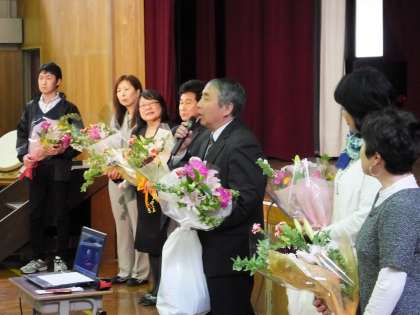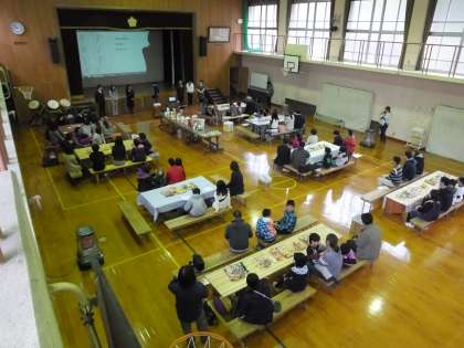 4月20日にPTA主催の歓送迎会が行われました。子どもたち、保護者、地域の方々にお集まりいただき、和気あいあいの雰囲気で行われました。体育館に約80人が集まり、準備いただいたお菓子をつまみながら異動した教職員の自己紹介や近況報告が行われました。また、卒業生や新入生の紹介、1年間の行事のスライドショーなど手づくりのとても温かい時間が流れました。朝早くからご準備いただいたPTAの皆様、本当にありがとうございました。