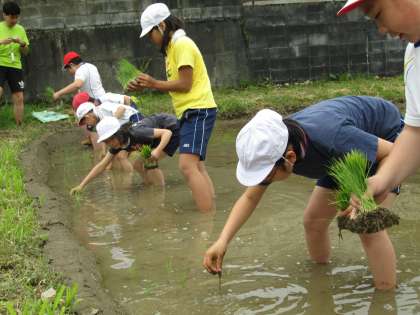 5・6年生で育てていくお米「静のゆめ」の田植えを行いました。草の伸びきった土地から,自分たちの頑張りや地域の人の協力で立派な水田になっていく様子を見ながら,田植をまだかまだかと心待ちにしていました!地域の人にも「手で植えたお米はおいしいよ!」と言われ,ますますこれから頑張って育てていく気持ちが芽生えたようです!