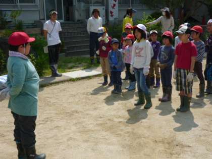 たてわりリーダーの6年生はみんなが拾ったごみを入れる袋をもち,色々なごみを見つけました。終了後「見かけはきれいだけど,こんなに色々なごみがあるのだから,みんなごみを捨てないようにしてほしい。」と,大切なことを感じた感想を述べました。