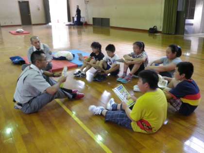教職員の救命法の研修会に5,6年生の希望者も参加しました。