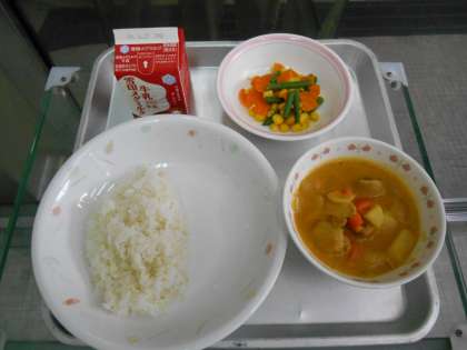 麦ごはん 牛乳 チキンカレー 野菜のソテー