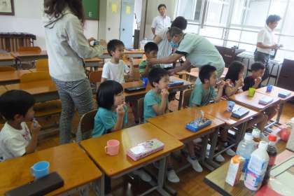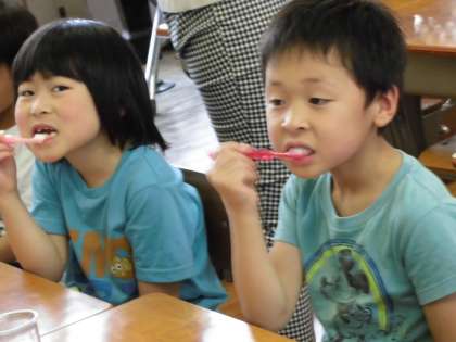 17日には、先がけて1,2年生対象に「歯みがき巡回指導」がありました。