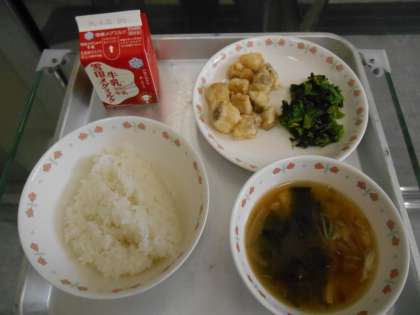 ごはん 牛乳 たらのからあげ ほうれん草のごま煮 みそ汁