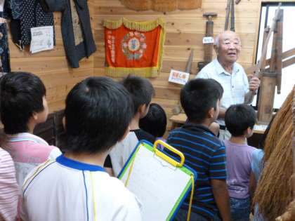 6年生児童もメモをとりながらしっかりお話を聞き,道具を色々と工夫して作った昔の人の素晴らしさを感じたという感想を述べました。このような道具の開発が,現代の進んだ技術の土台になっているのです。