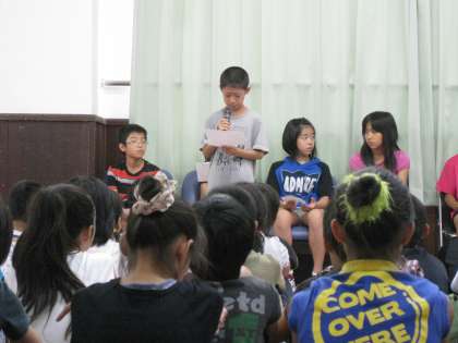 最終社内会議や第3回全体ミーティングの様子です。各ブースの仕事の様子や売上についての報告を行いました。とても充実した一日で,「また来たいですか?」と聞かれると,ほとんどの児童が挙手をしていました。帰ってからこの学習を学校生活にも生かしていきたいです。