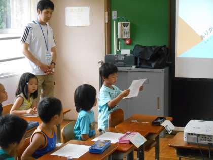 感想交流をしています。自分から、感想を伝えようと考えて発表しています。