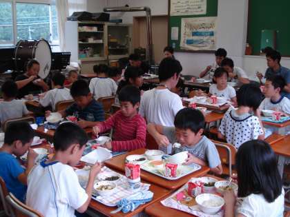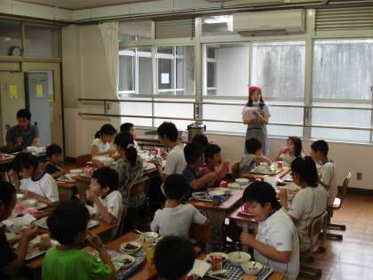 今日の給食時間は、全校児童が集まり全員で給食をいただきました。学年をこえていつもとは違う友達と仲良く話しながらいただく給食はまた格別のおいしさだったようです。