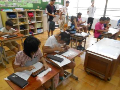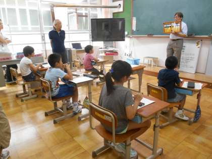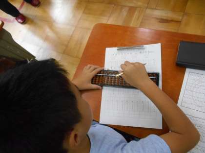 そろばん学習も久しぶりにしました。今までの事を確かめながら進んでいました。