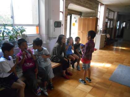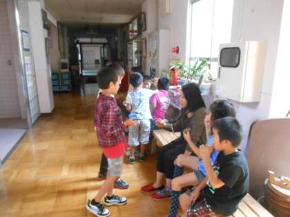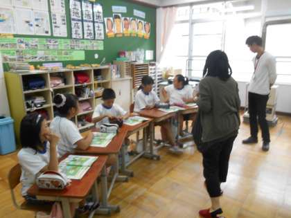 ALTの来られる日です。外国語活動の時間だけでなく、給食後のハミガキタイムでは、低学年児童も慣れて、英語を多少使いながら、コミュニケ—ションを積極的に取っていました。