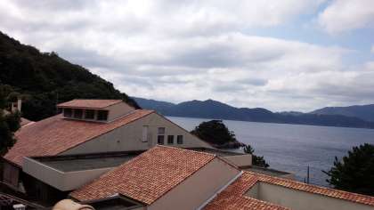 若狭湾青少年自然の家の部屋から見える風景です。天候もよく、素敵な海の景色が広がっています。