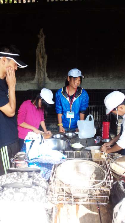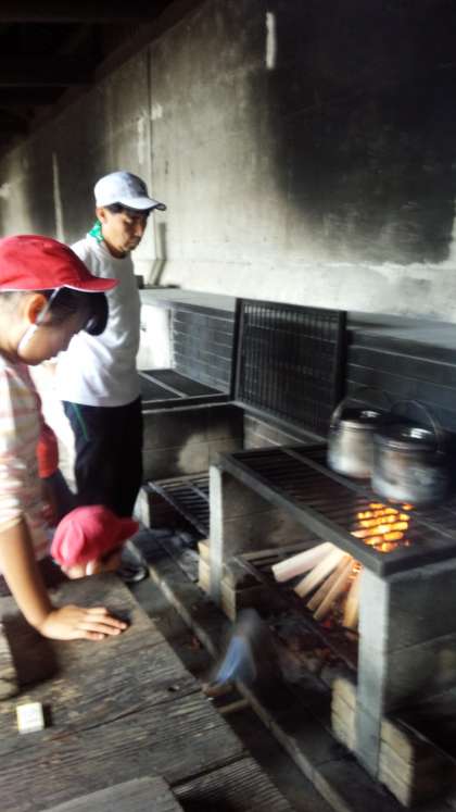 今日の昼食は自分たちで作ります。火をおこしり野菜を切ったりしていきます。