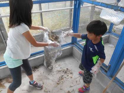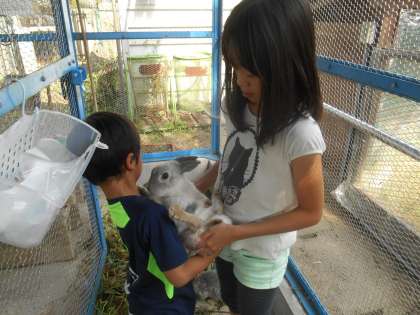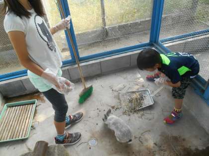 うさぎ小屋の清掃を5,6年生がいなくてもしています。汚くて、臭いのする清掃活動ですが、頑張っています。清掃の後、エサをあげたり、抱っこをしたりしてふれあうこともできます。生き物の気持ちを考えて撫でてやると対応してくれますが、そうでないと嫌がって逃げてしまいます。気持ちを考えるのは難しいようですが、嫌がることはしませんよという気持ちが伝わるように行動することです。