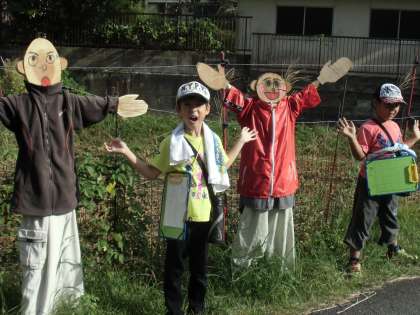 1日(水)夏と比べて変わったことを見つけるために,静原探検に行きました。虫のこえが聞こえ,キンモクセイの香りがしました。稲刈りが終わり,柿の実がなっていました。他にも,いろいろ見つけました。もうすっかり秋です。