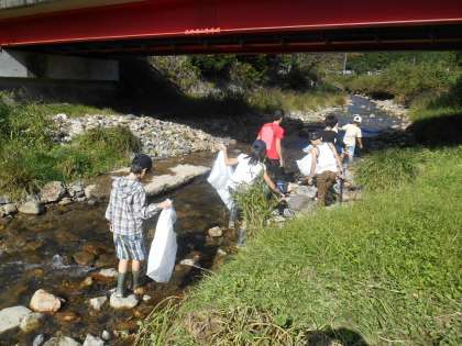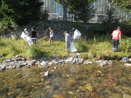 3,4年生が、静原川学習で静原川の様子を見ながら、ゴミ拾いをしました。燃える燃えないの分別をして集めていました。静原川がどうなっているのかを確かめて、きれいな川にしようと行動をしていました。