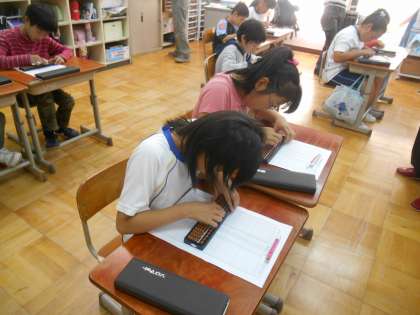 読み上げ算はいつもより早く読み上げられました。少し追いつかない場面もありましたが、何度かチャレンジするうちに追いつくようになりました。一瞬のうちに聞き取ったことをもとにそろばんを操作します。操作の仕方が身に付いていればすぐに反応できます。日頃から何事にも時間を意識して行動することが習慣化されていることも重要なことです。