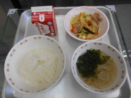 ごはん 牛乳 鶏肉とキャベツのみそいため わかめスープ