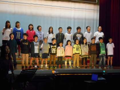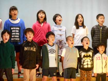 音楽集会は、学習発表会の練習となっています。舞台に並んで、しっかり口をあけて歌っている姿が美しいです。