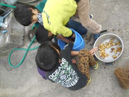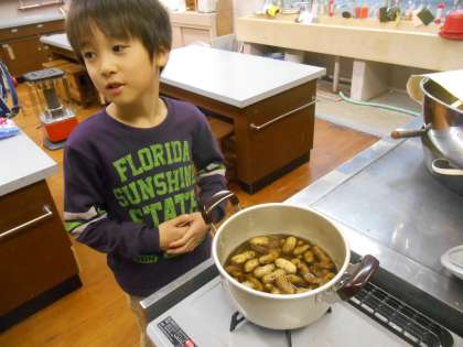ジャンボ落花生を収穫したものを食べられるように、洗って塩ゆでしました。