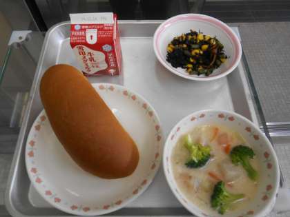 味つけコッペパン 牛乳 だいこんのクリームシチュー ひじきのソテー
