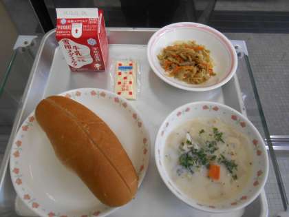 コッペパン 牛乳 ツナごぼうサンド(具) 豆乳スープ