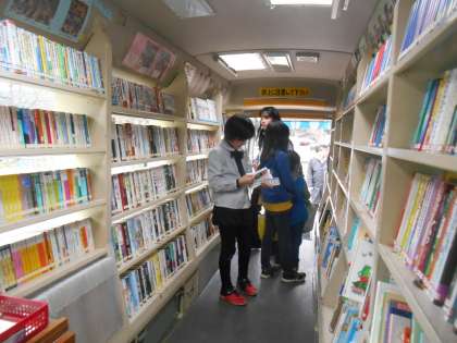 月1回の移動図書館です。本の貸し借りを低学年も自分で進めています。