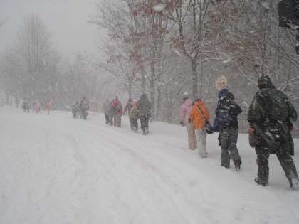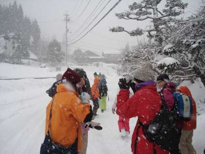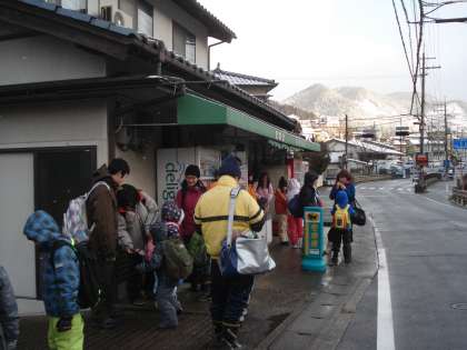 花背山の家へ雪遊びに行ってきました。前日までの雨で行けるかどうか心配しましたが、そんな心配を吹き飛ばすような大雪を体験することができました。市原駅前のバス停と花背山の家前のバス停の景色の違いにびっくりしました。