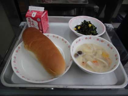 ミルクコッペパン 牛乳 きのこのクリームシチュー ほうれんそうのソテー