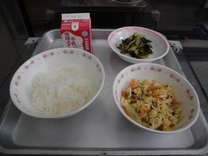 ごはん 牛乳 あげたま煮 ほうれんそうとはくさいのごま煮