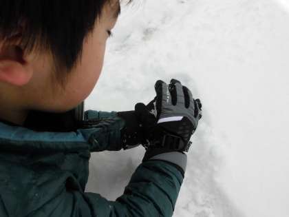 さらさらの雪で、ギュッギュッと丸めても固くなりません。