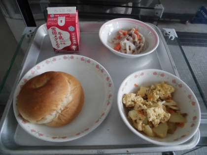 バターうずまきパン 牛乳 変わりいり卵 れんこんのソテー