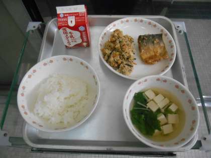 ごはん 牛乳 さばのたつたあげ おから 花菜のすまし汁